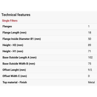 Single Flange ID 50mm/Flange Length 18mm/Central Width 0mm/Height 89mm/Outside Length 102mm/Outside Width 75mm