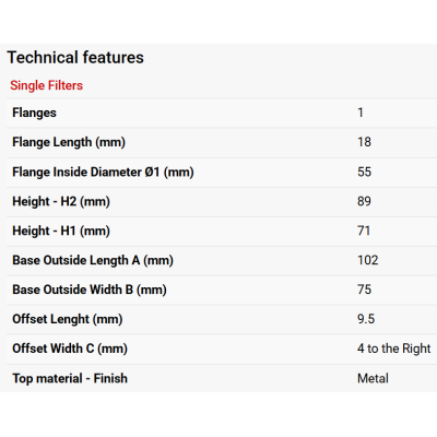 They are manufactured using the characteristic red rubber that allows the connection of the intake to be resistant to both engine stress and heat withot suffering from deformation caused by high temperature. The special filtration mesh allows the production 0f filters with a power of up to 700 HP without presenting deformation problems.