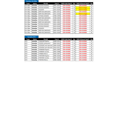 - Yamaha YFM660R Raptor ATV - 2001-2005 - Fits both Inlet & Exhaust Valves